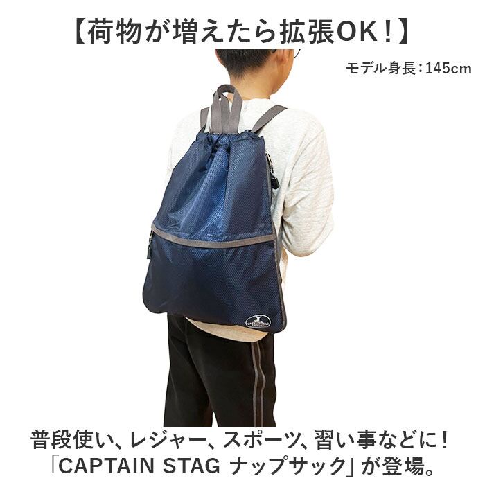 ・普段使い、レジャー、スポーツ、習い事などに!「CAPTAIN STAG ナップサック」が登場。