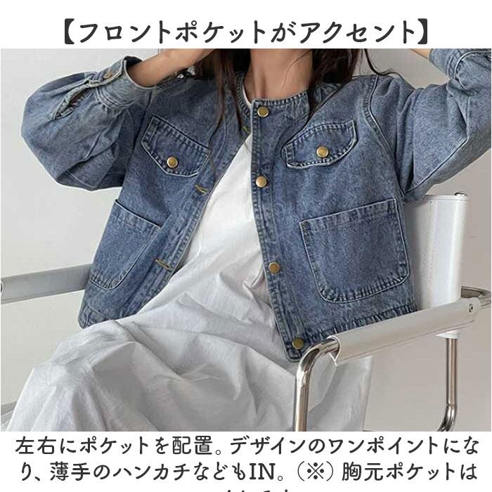 ・襟のないノーカラーデザイン。お顔全体がすっきり見え、ナチュラルな抜け感で上品さも漂う♪