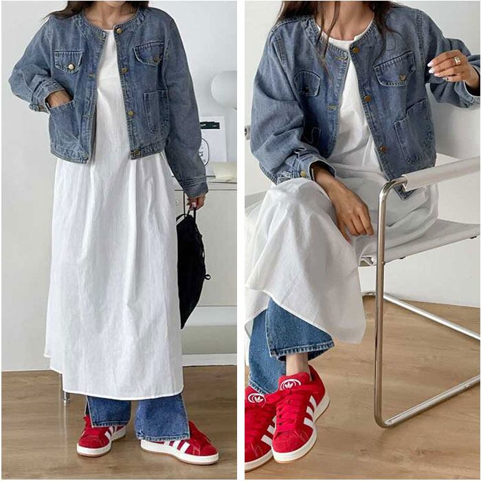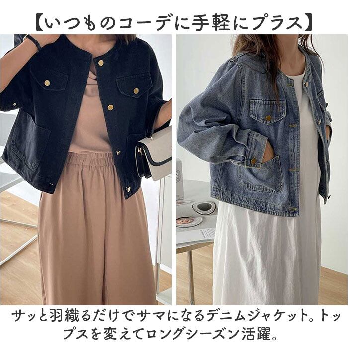 ・サッと羽織るだけでサマになるデニムジャケット。トップスを変えてロングシーズン活躍。