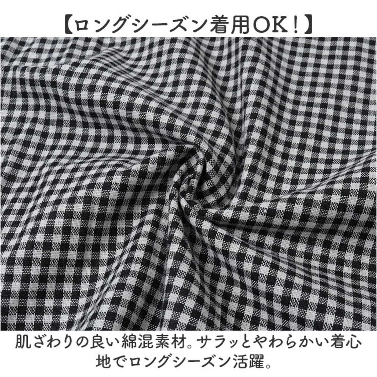 ・肌ざわりの良い綿混素材。サラッとやわらかい着心地でロングシーズン活躍。