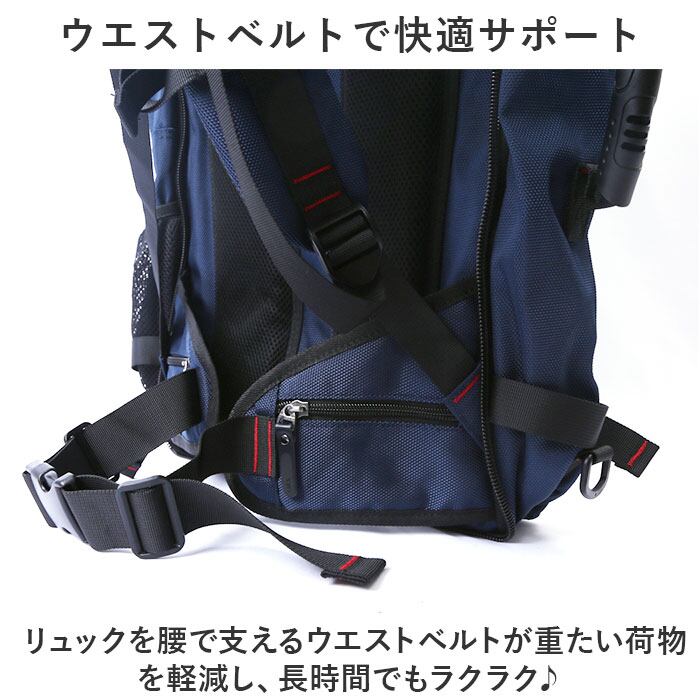 ・リュックを腰で支えるウエストベルトが重たい荷物を軽減し、長時間でもラクラク♪