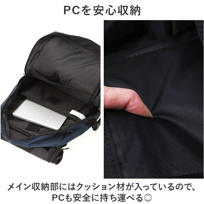 ・メイン収納部にはクッション材が入っているので、PCも安全に持ち運べる◎