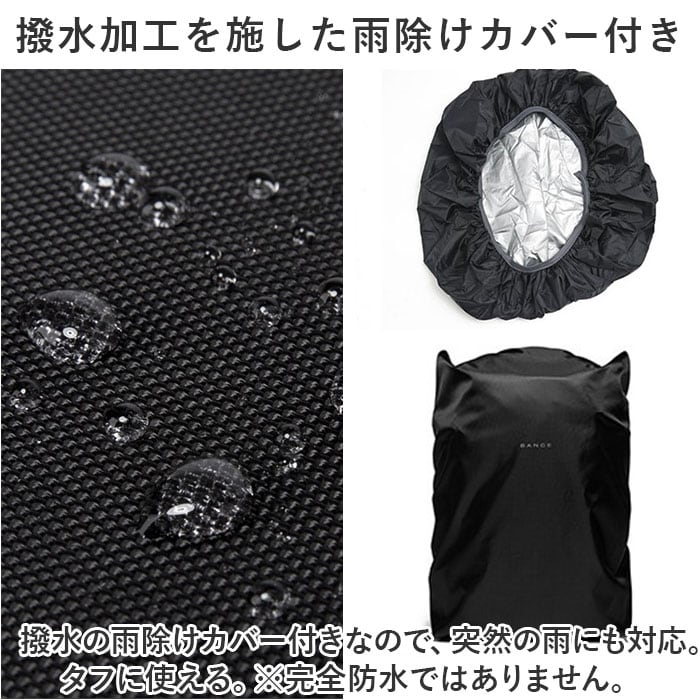 ・撥水の雨除けカバー付きなので、突然の雨にも対応。タフに使える。※完全防水ではありません。
