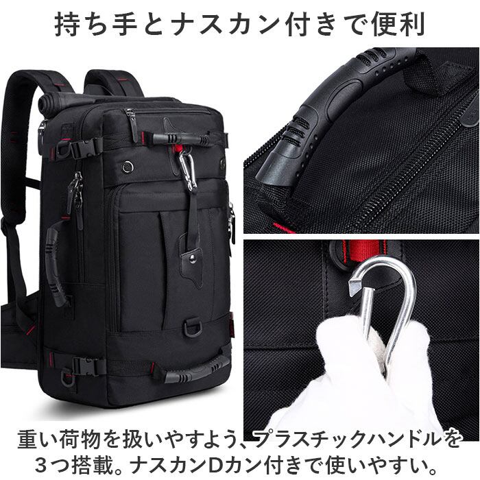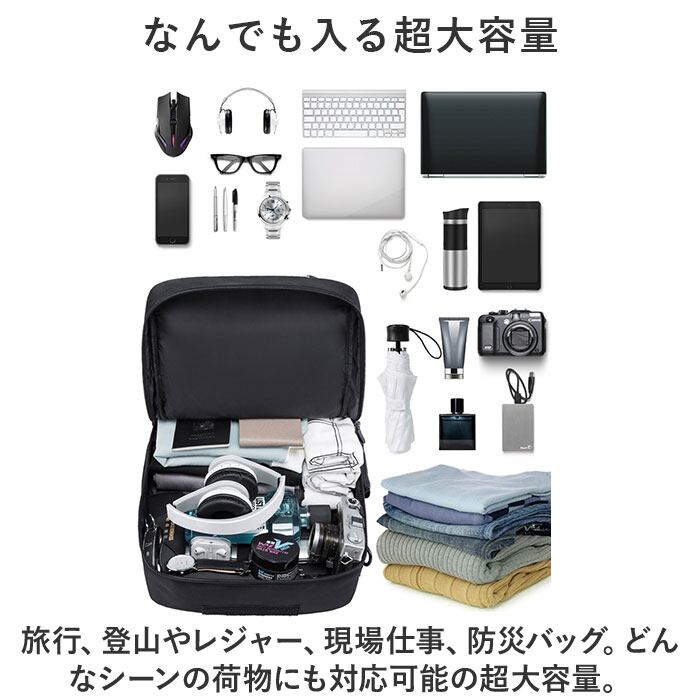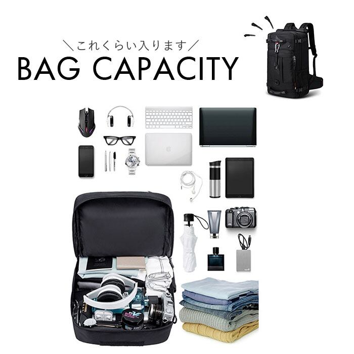 ・旅行、登山やレジャー、現場仕事、防災バッグ。どんなシーンの荷物にも対応可能の超大容量。
