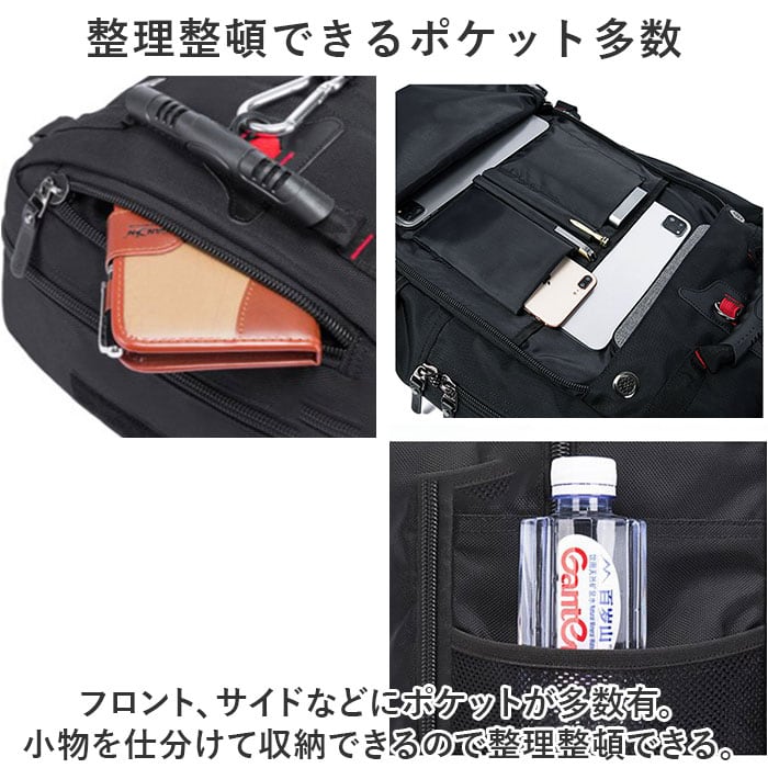 ・フロント、サイドなどにポケットが多数有。小物を仕分けて収納できるので整理整頓できる。