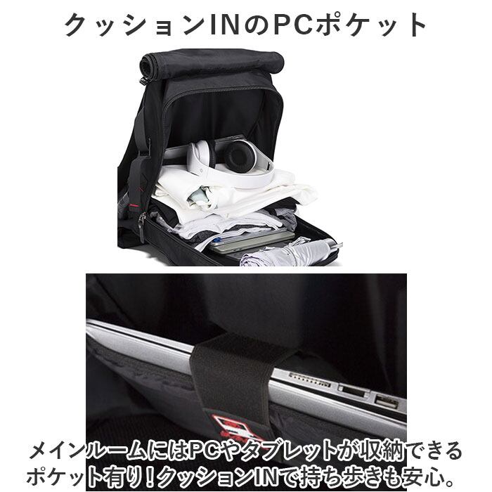 ・メインルームにはPCやタブレットが収納できるポケット有り!クッションINで持ち歩きも安心。