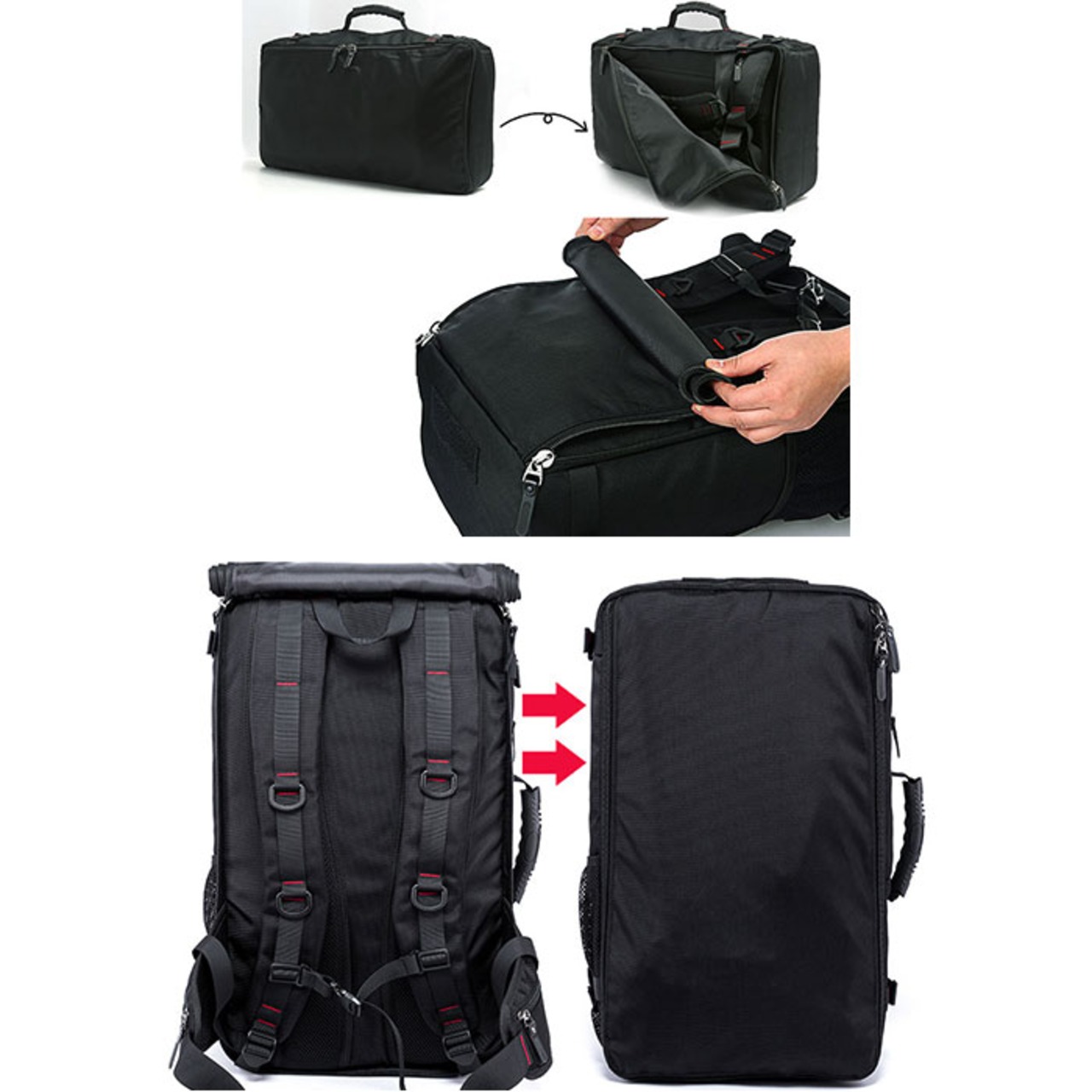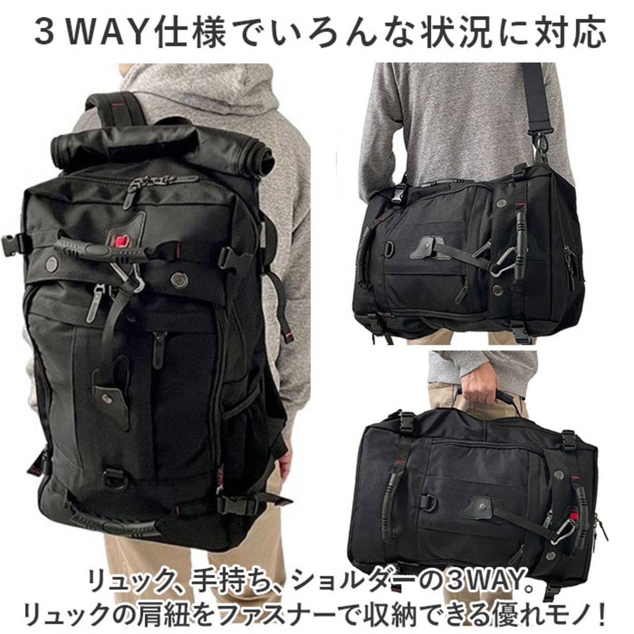 ・リュック、手持ち、ショルダーの3WAY。リュックの肩紐をファスナーで収納できる優れモノ!