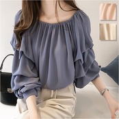 ・全体的にゆったりとした作りのフレアブラウス。体型カバーはもちろん締め付け感が苦手な方にもおススメ!