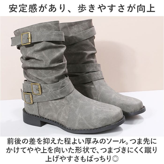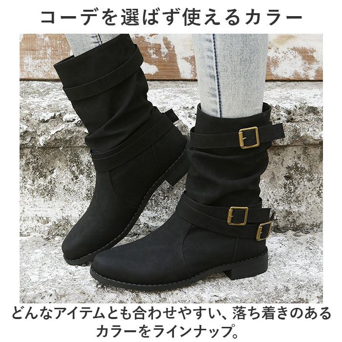 ・ファスナーなどがなく、すぽっと履けてラクチン。ブーツを脱ぐ場面でも手間取らない!