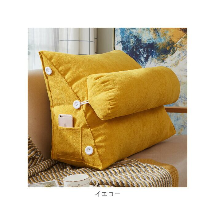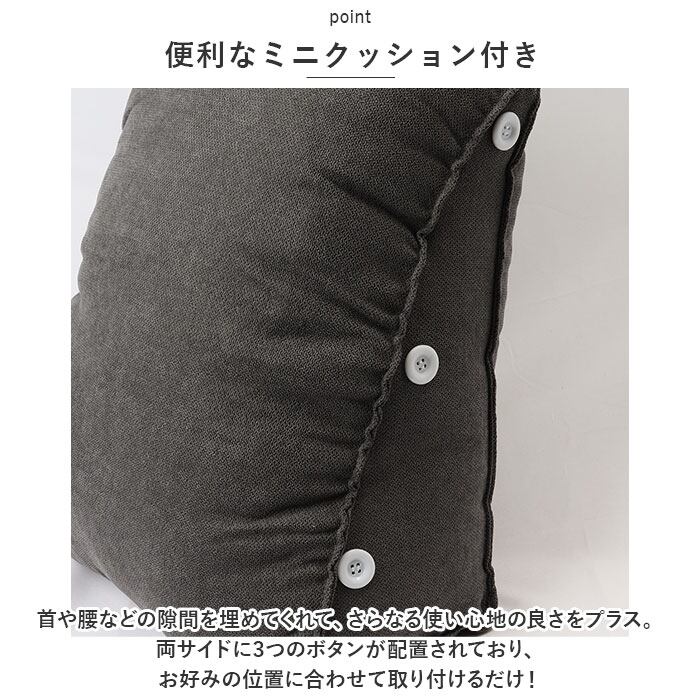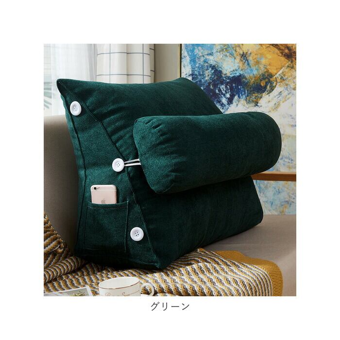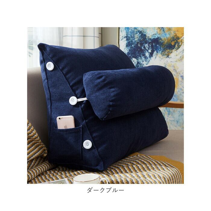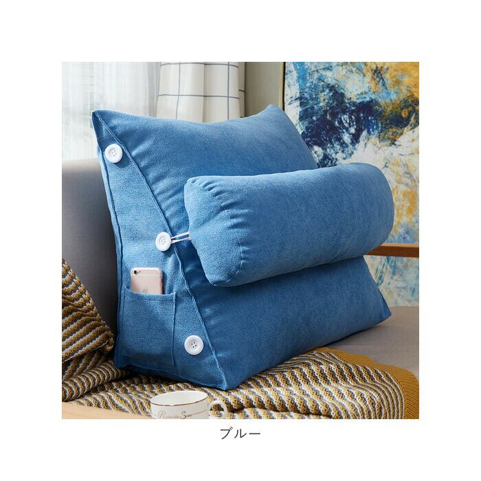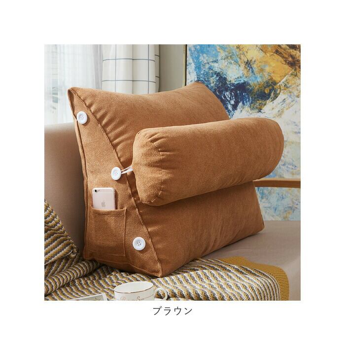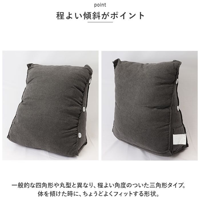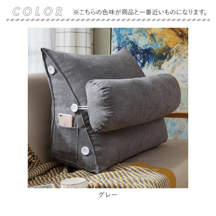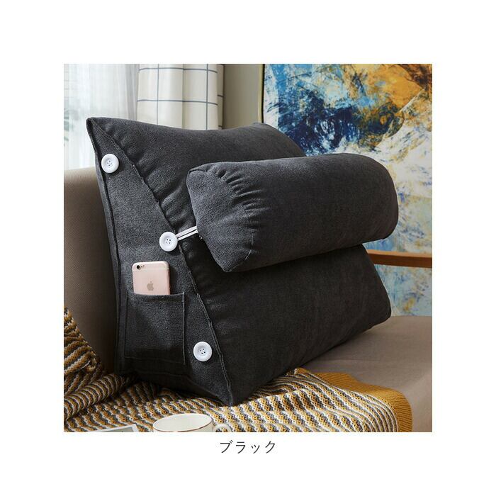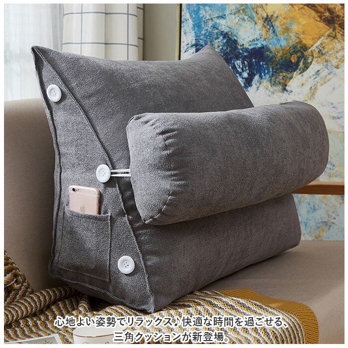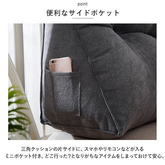・三角クッションの片サイドに、スマホやリモコンなどが入るミニポケット付き。どこ行った?となりがちなアイテムをしまっておけて安心。