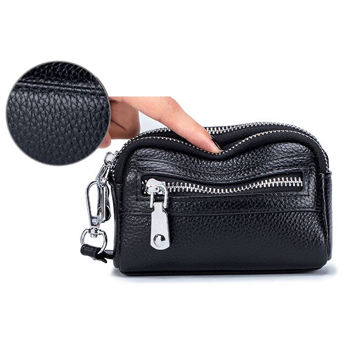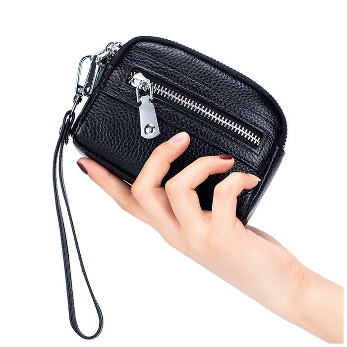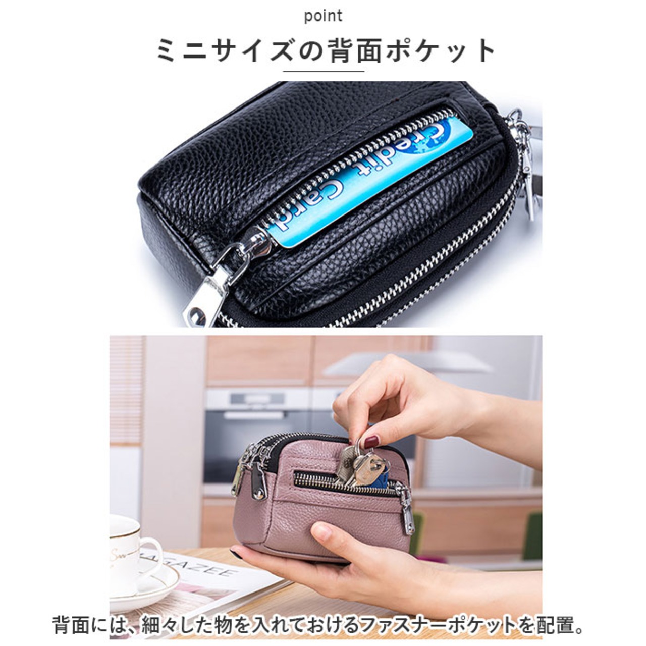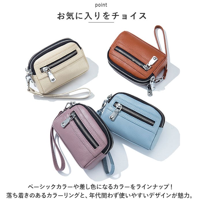・メイン収納は2つのファスナーポケット。カードや折り札、小銭はもちろん、鍵やリップなどの小物も収納OK。