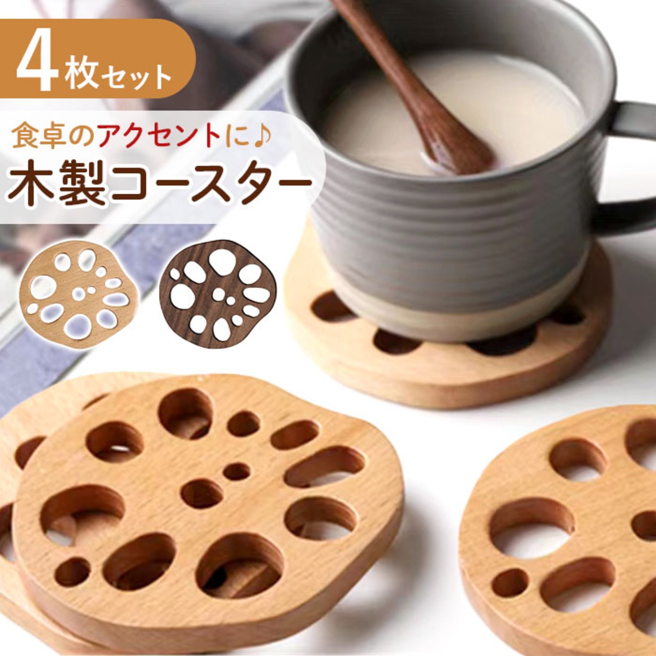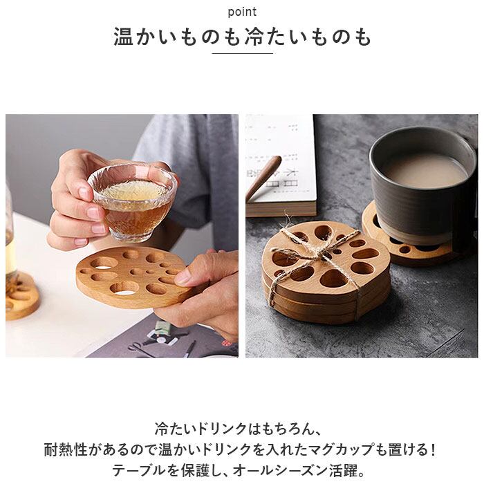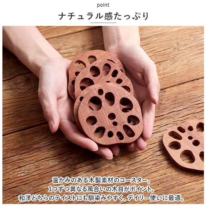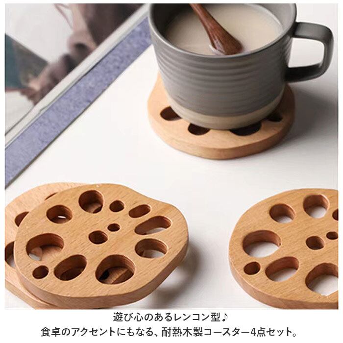 コースター 木製 通販 木製コースター 4枚 4点 セット コップ敷き レンコン 敷物 茶托 茶たく 雑貨 食器 お茶 カフェ コーヒー 来客用 おもてなし おうちカフェ ナチュラル シンプル キッチン雑貨 食器 カトラリー おしゃれ かわいい