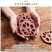・遊び心のあるレンコン型♪食卓のアクセントにもなる、耐熱木製コースター4点セット。