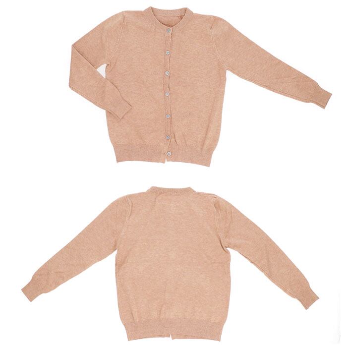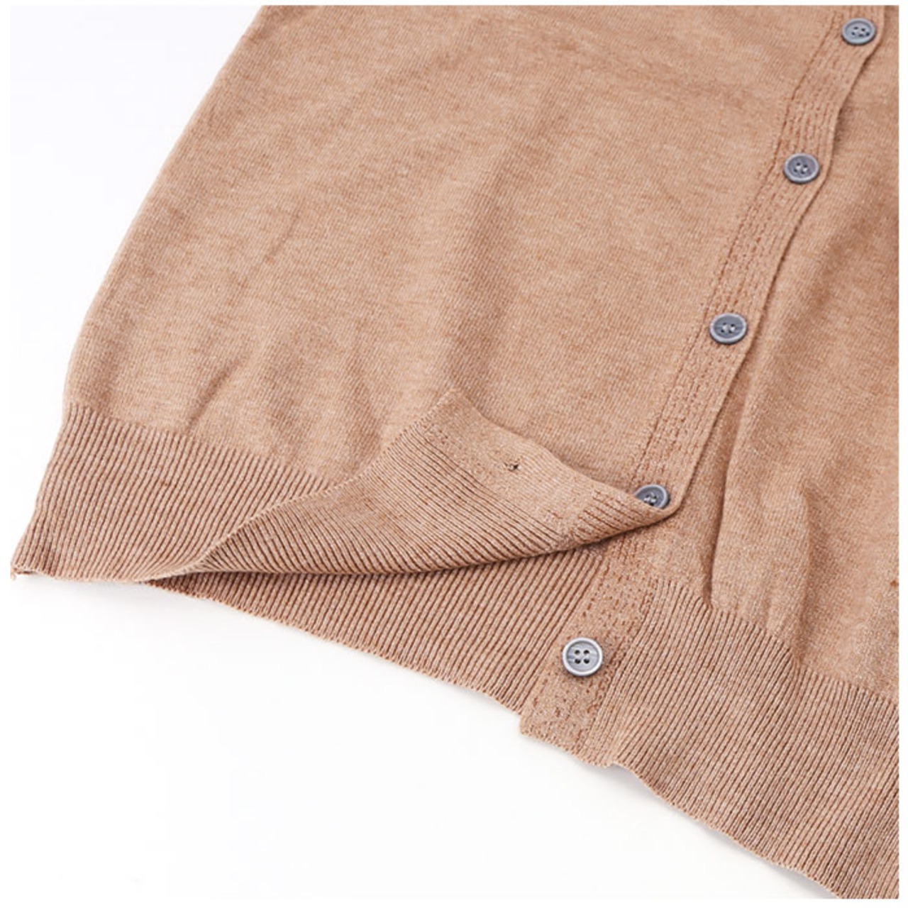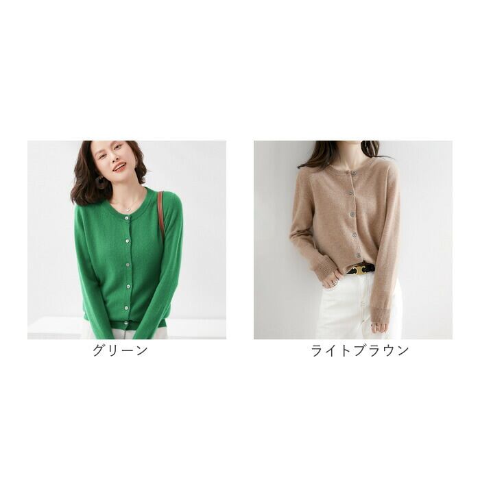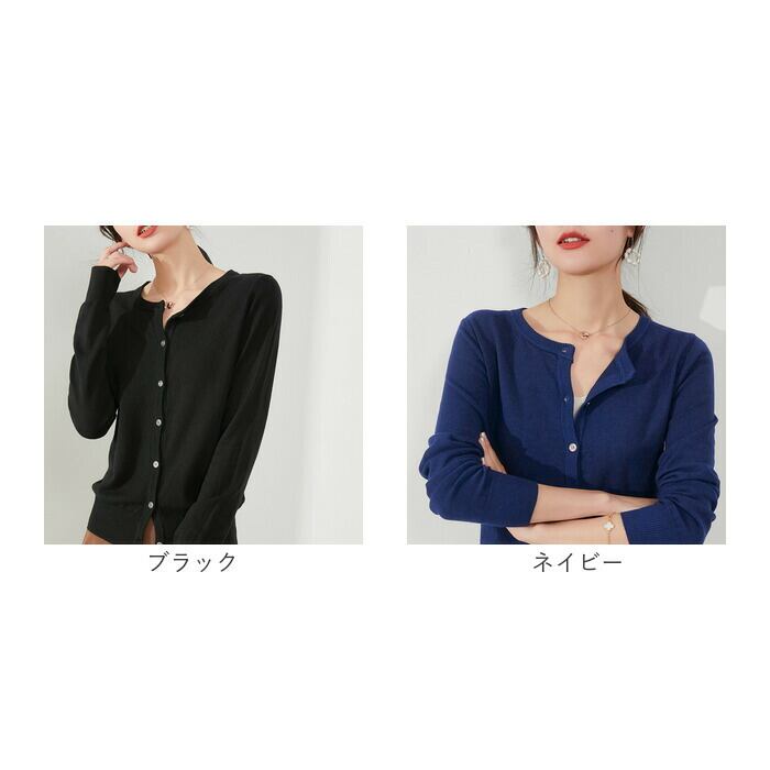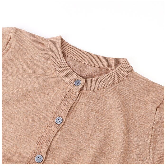 ・優しい印象のラウンドネックライン。程よい伸縮性があり、気軽に羽織れるフロントボタンタイプ。ボタンを留めてトップス風に着てもOK。