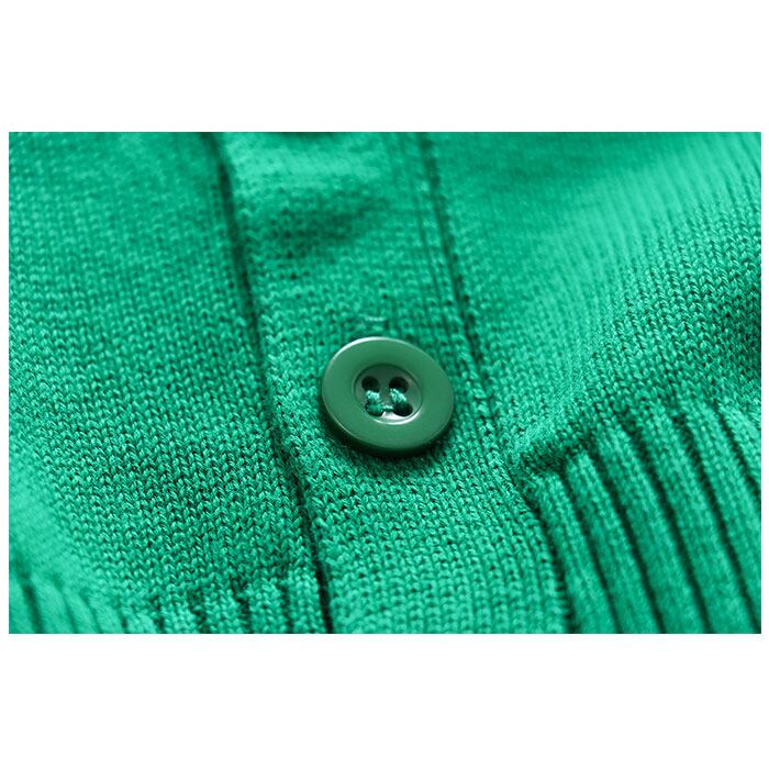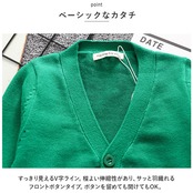・すっきり見えるV字ライン。程よい伸縮性があり、サッと羽織れるフロントボタンタイプ。ボタンを留めても開けてもOK。