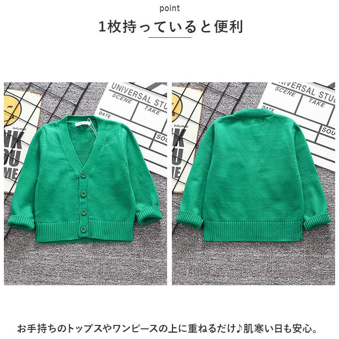 ・着回し力ばっちり。シンプルなデザインの、キッズ用カーディガンが新登場。