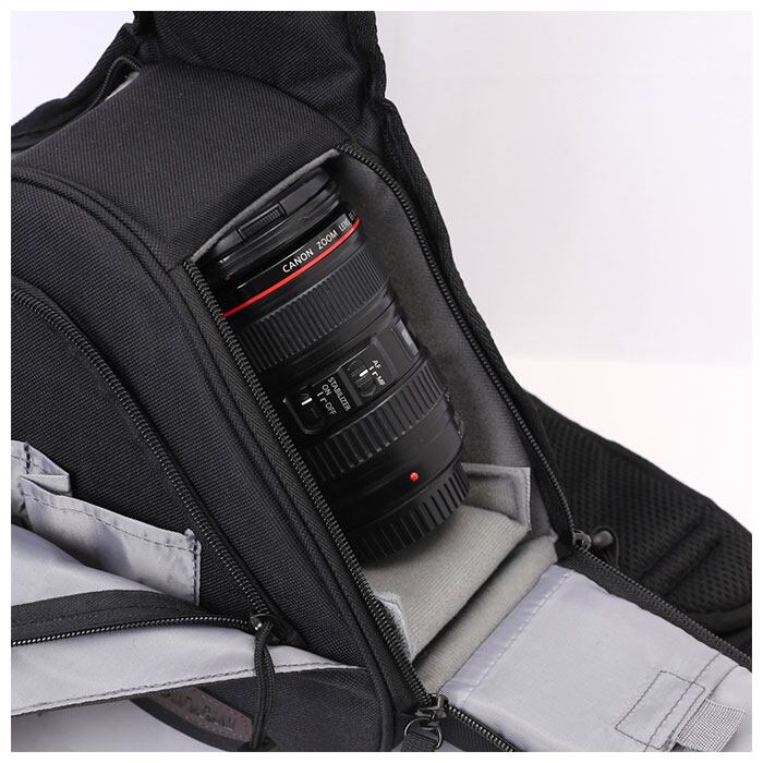 ・バッグ背面部分には、貴重品やパスポートが収納できるシークレットポケットを装備し、海外での撮影旅行も安全に楽しめるのがポイント。