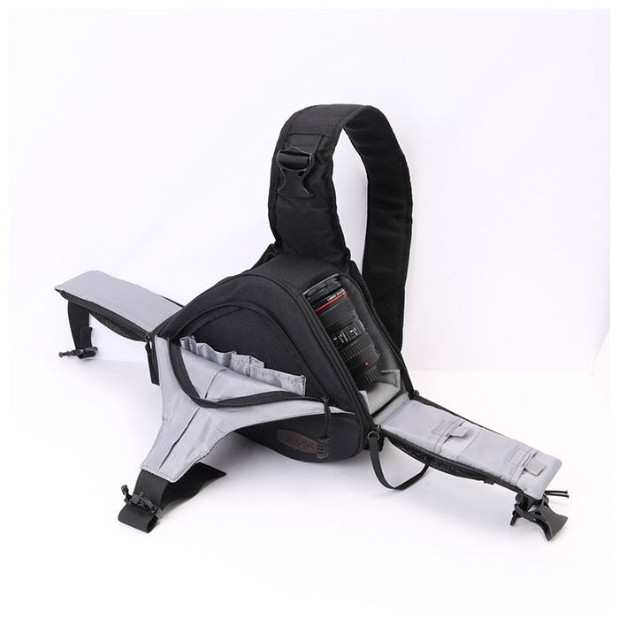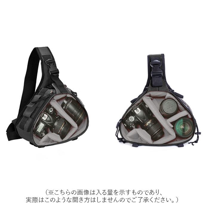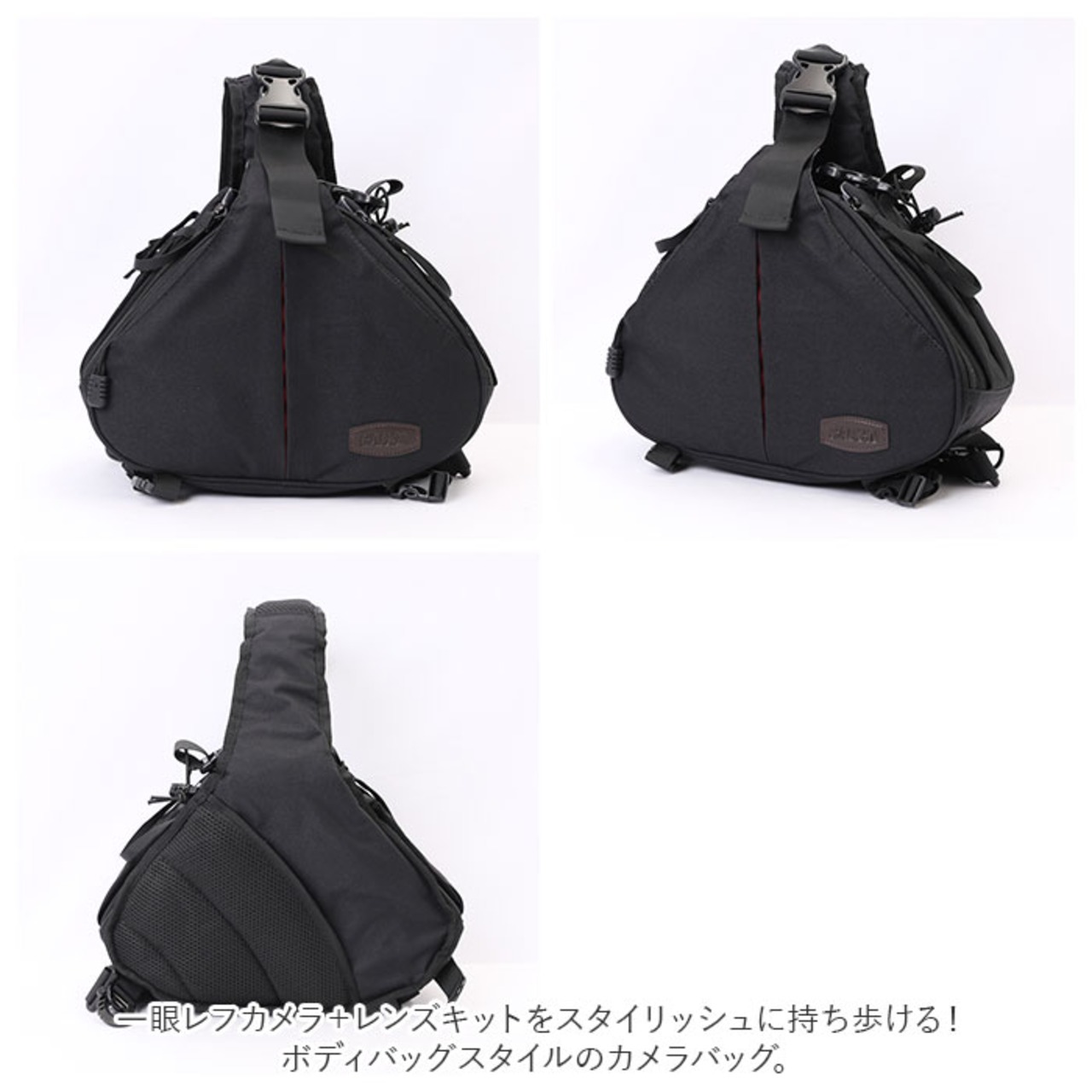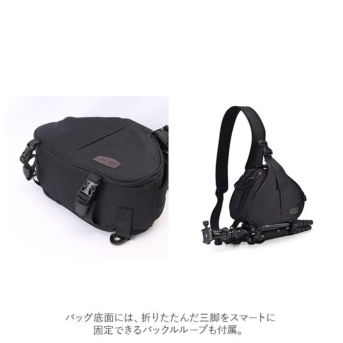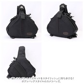 ・一眼レフカメラ+レンズキットをスタイリッシュに持ち歩ける!ボディバッグスタイルのカメラバッグ。