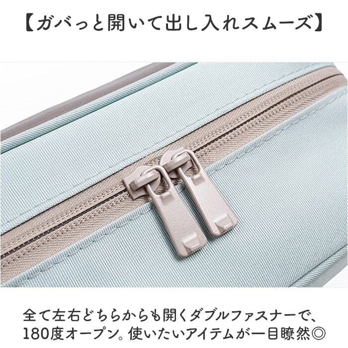 ・全て左右どちらからも開くダブルファスナーで、180度オープン。使いたいアイテムが一目瞭然◎