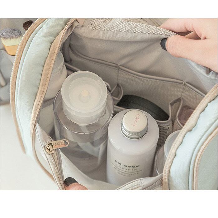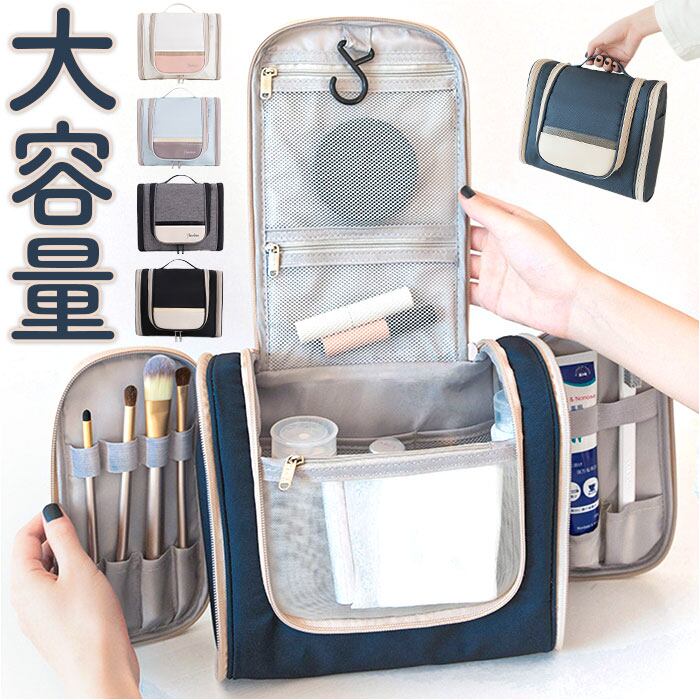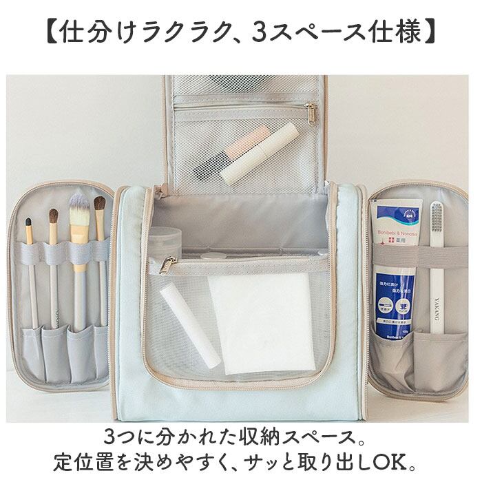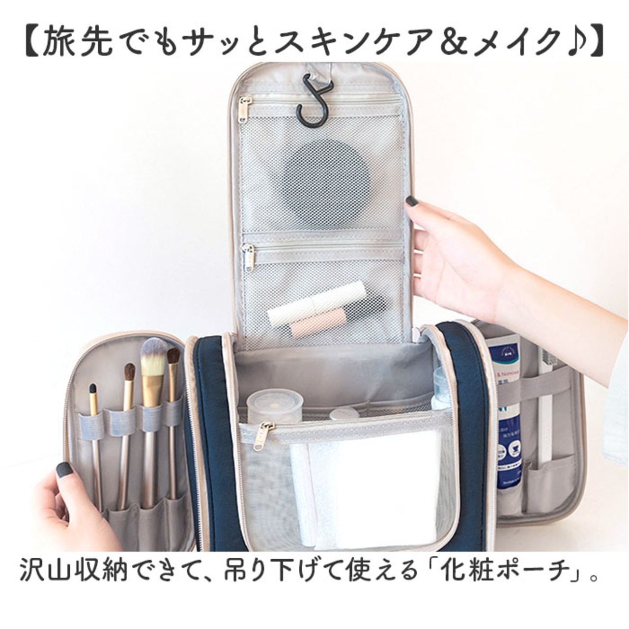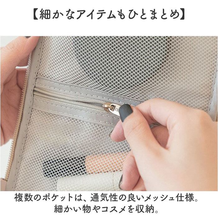 ・旅先でもサッとスキンケア&メイク♪沢山収納できて、吊り下げて使える「化粧ポーチ」。
