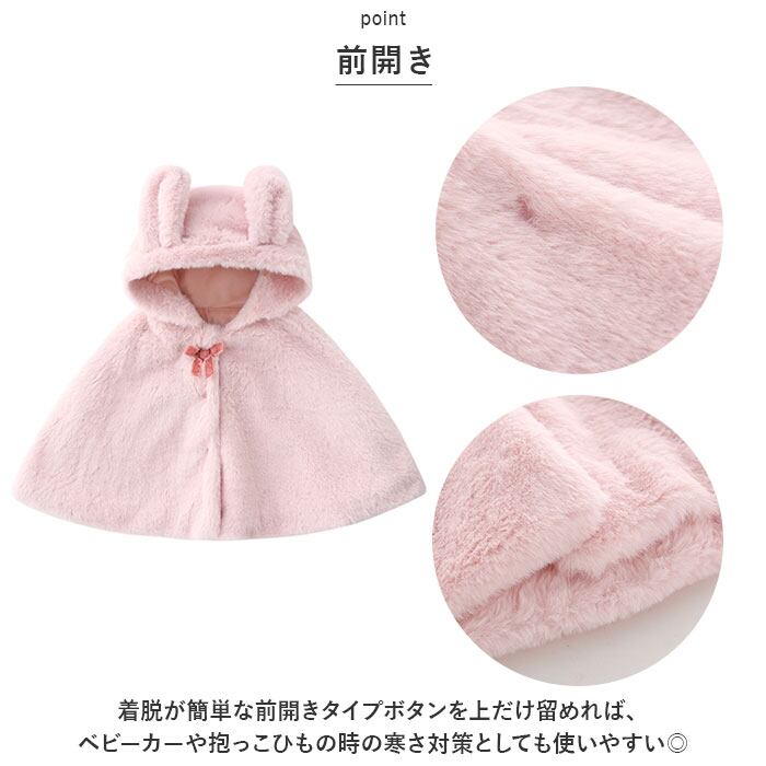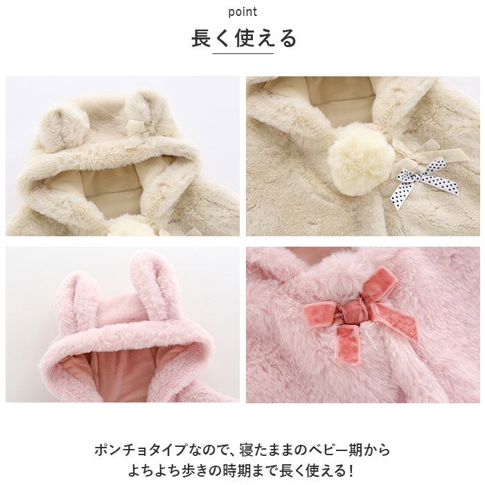 ・ベージュは首元のポンポンとくま耳付きフード、ピンクは首元のリボンとうさ耳付きフードがアクセント☆