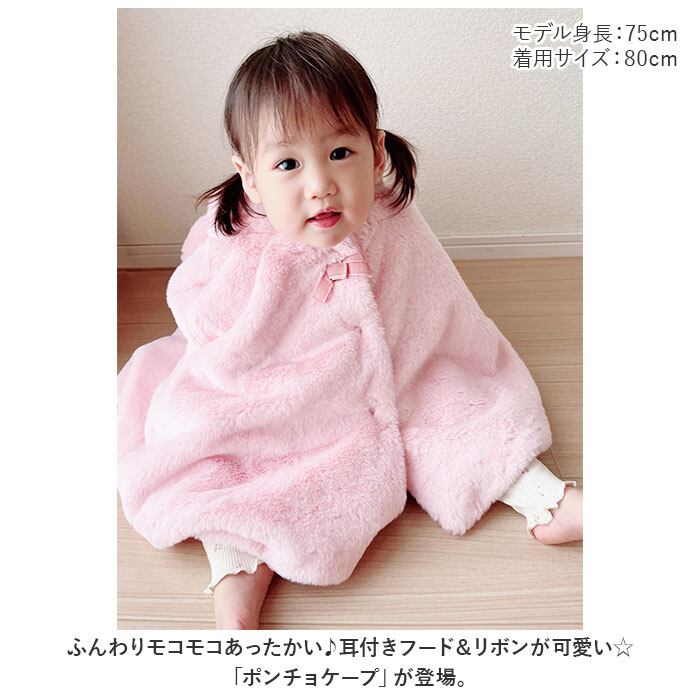 ・ふんわりモコモコあったかい♪耳付きフード&リボンが可愛い☆「ポンチョケープ」が登場。