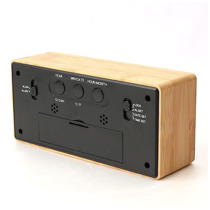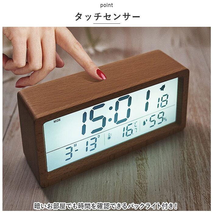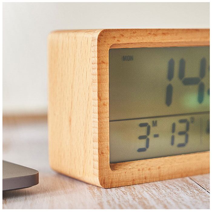 ・天然木材の優しい雰囲気のフレーム♪大画面ディスプレイで見やすい「目覚まし時計」が登場♪