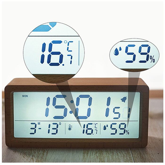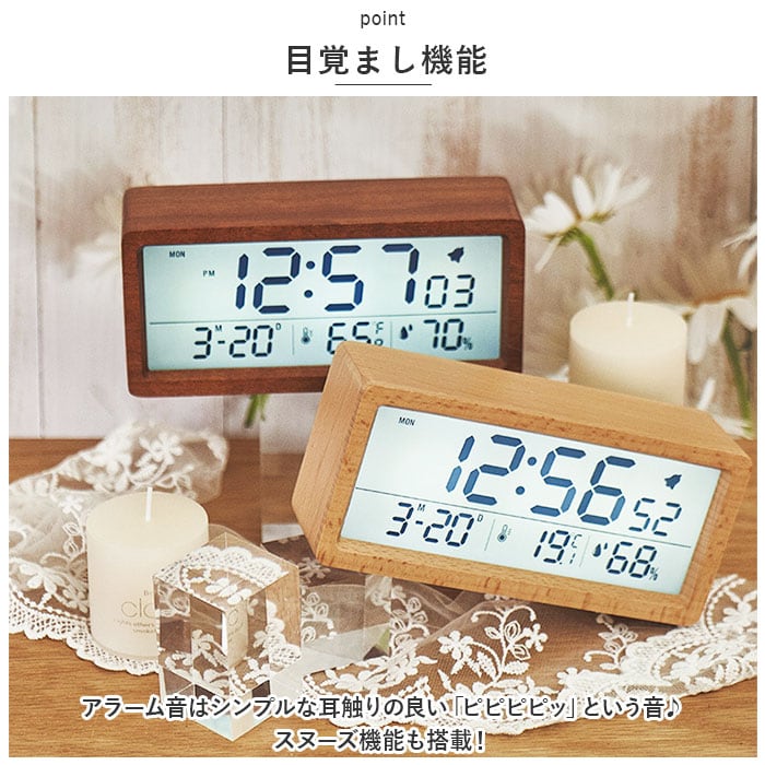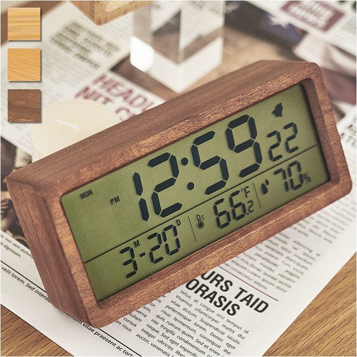 デジタル時計 おしゃれ 置き時計 通販 目覚まし時計 置時計 めざまし時計 デジタル 温度 湿度 カレンダー シンプル 木製 寝室 ベッドルーム アラーム時計 リビング ベッドサイド デスク 机 大画面 見やすい インテリア