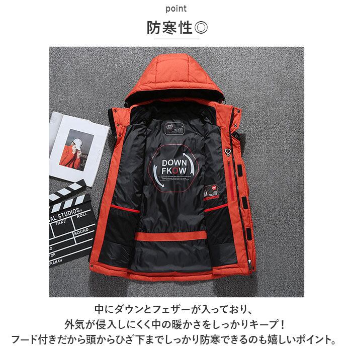 ・フード付きだから頭からひざ下までしっかり防寒できるのも嬉しいポイント。