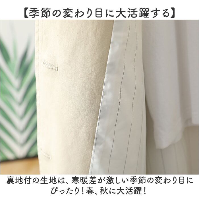 ・裏地付の生地は、寒暖差が激しい季節の変わり目にぴったり!春、秋に大活躍!