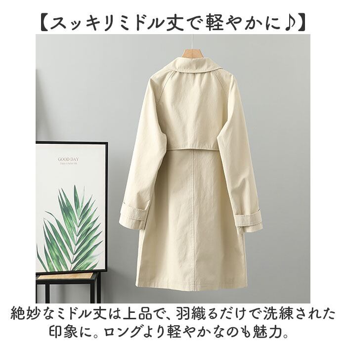 ・絶妙なミドル丈は上品で、羽織るだけで洗練された印象に。ロングより軽やかなのも魅力。