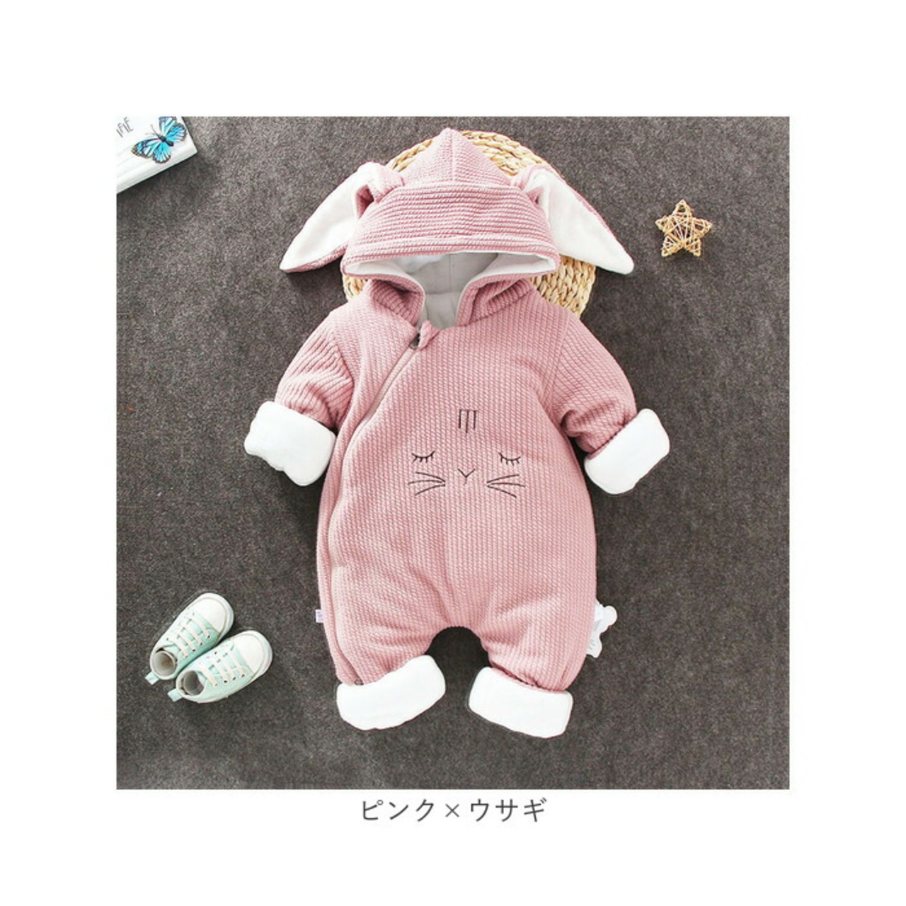 ・綿入りで暖かい♪耳付きキュートな「ベビーアウター ロンパース」が登場。