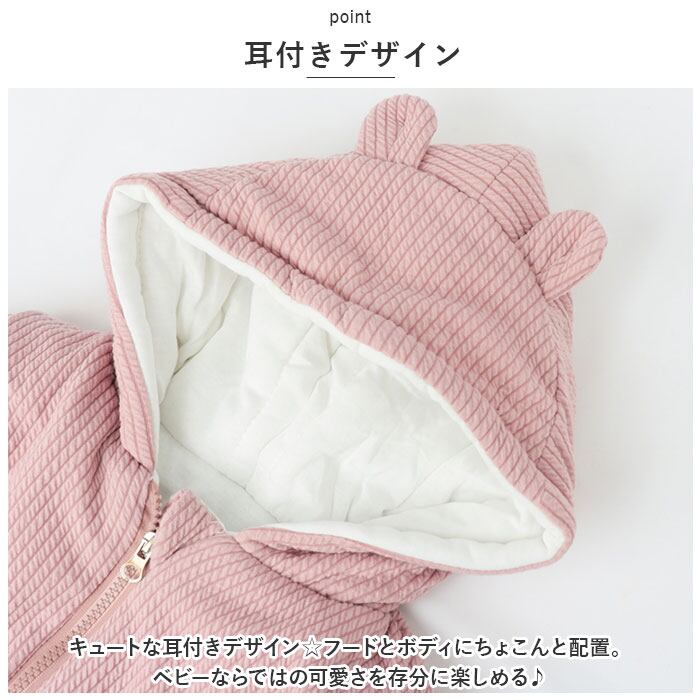 ・キュートな耳付きデザイン☆フードとボディにちょこんと配置。ベビーならではの可愛さを存分に楽しめる♪