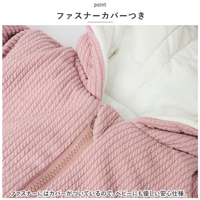 ・ファスナーにはカバーがついているので、ベビーにも優しい安心仕様。
