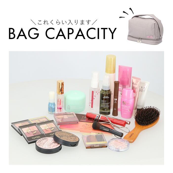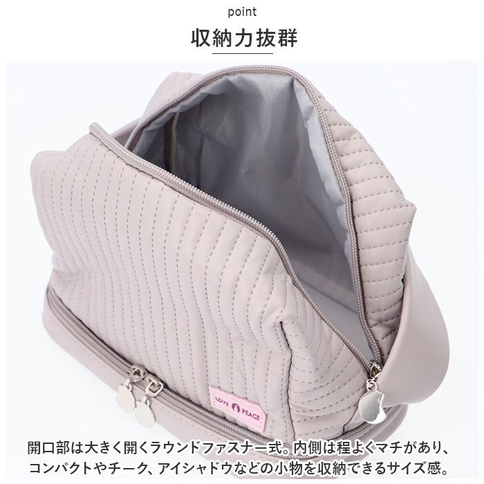 ・開口部は大きく開くラウンドファスナー式。内側は程よくマチがあり、コンパクトやチーク、アイシャドウなどの小物を収納できるサイズ感。