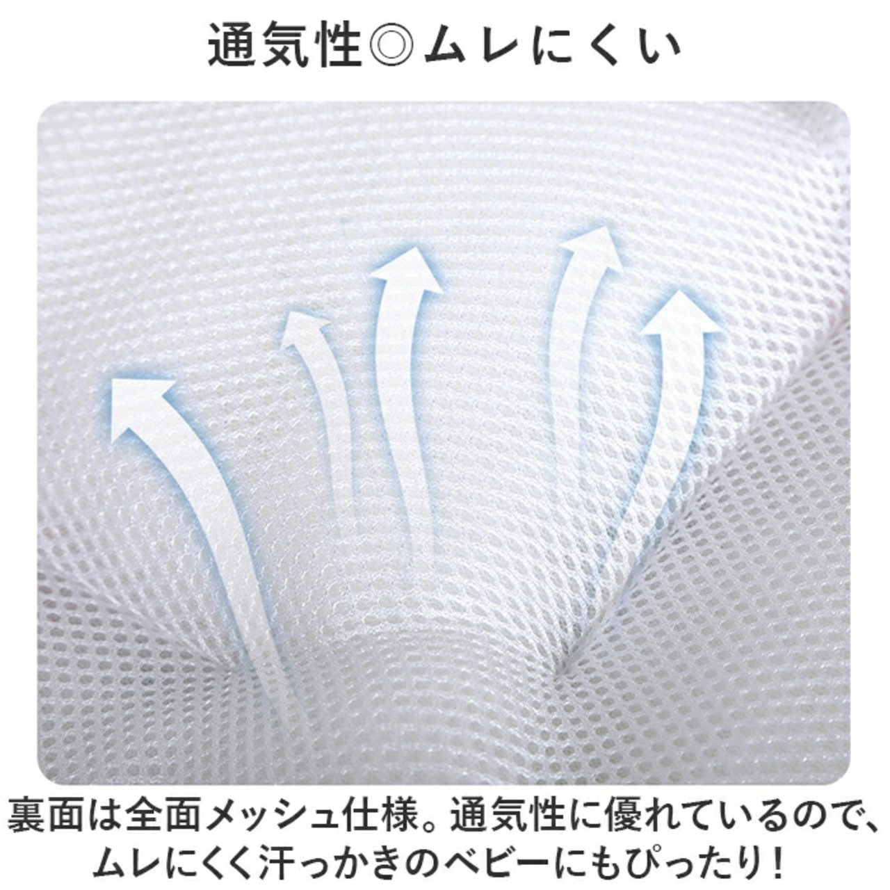 ・裏面は全面メッシュ仕様。通気性に優れているので、ムレにくく汗っかきのベビーにもぴったり!