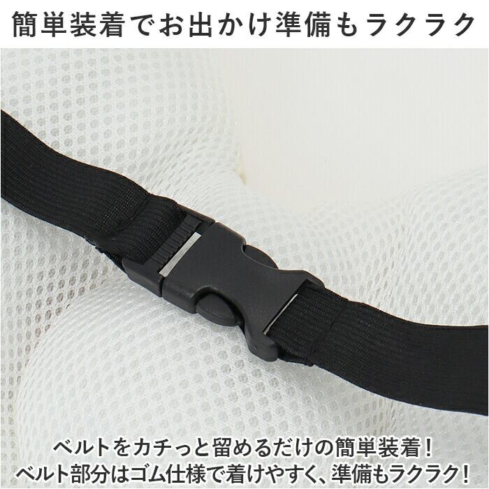 ・ベルトをカチっと留めるだけの簡単装着!ベルト部分はゴム仕様で着けやすく、準備もラクラク!