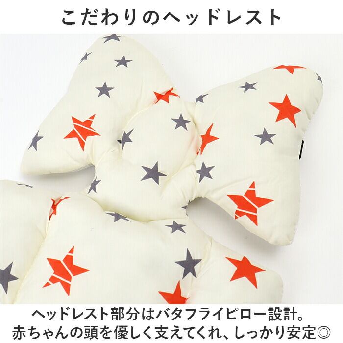 ・ヘッドレスト部分はバタフライピロー設計。赤ちゃんの頭を優しく支えてくれ、しっかり安定◎