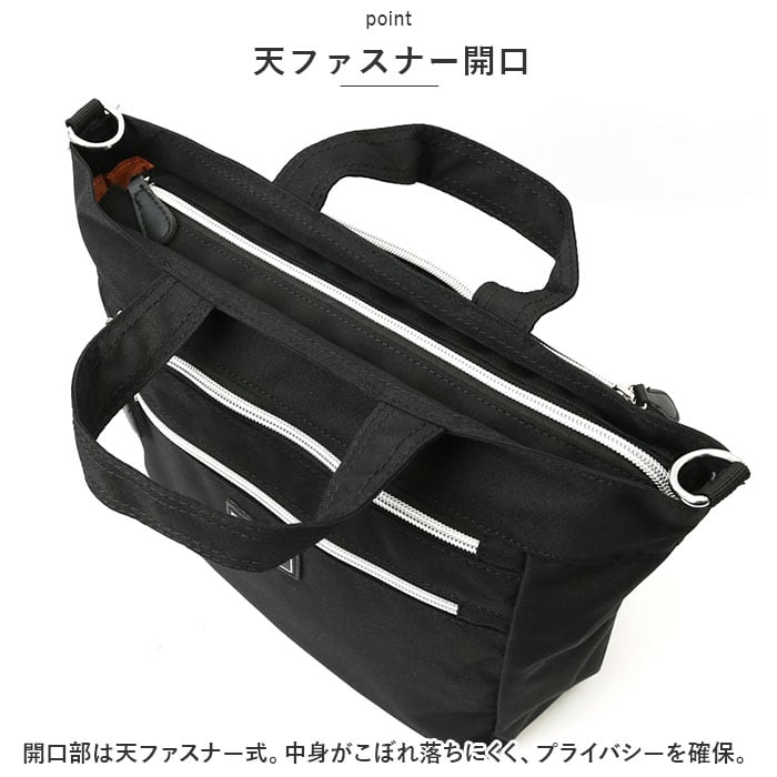・開口部は天ファスナー式。中身がこぼれ落ちにくく、プライバシーを確保。
