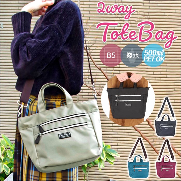 ショルダーバッグ レディース 通販 トートバッグ ショルダーバック 斜めがけ トートバック ファスナー付き ハンドバッグ バッグ バック 大人 軽量 ポリ はっ水 撥水 おしゃれ カジュアル シンプル LYDIA リーディア