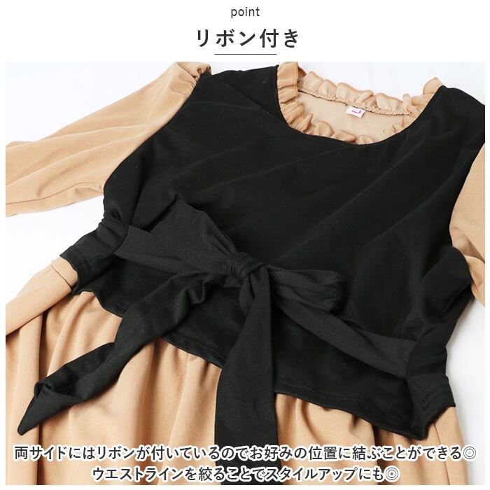 ・両サイドにはリボンが付いているのでお好みの位置に結ぶことができる◎ウエストラインを絞ることでスタイルアップにも!
