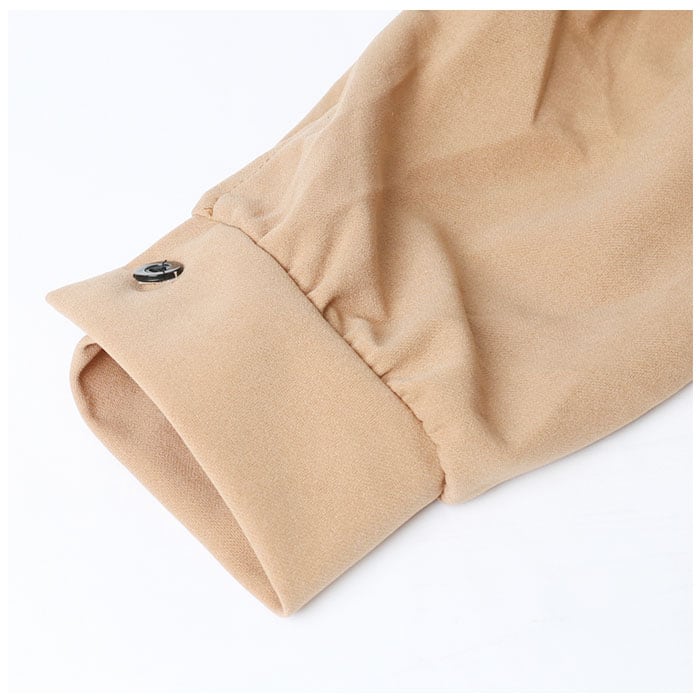 ・首元がスッキリと見えるフリルのスタンドカラーは上品な印象。