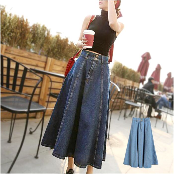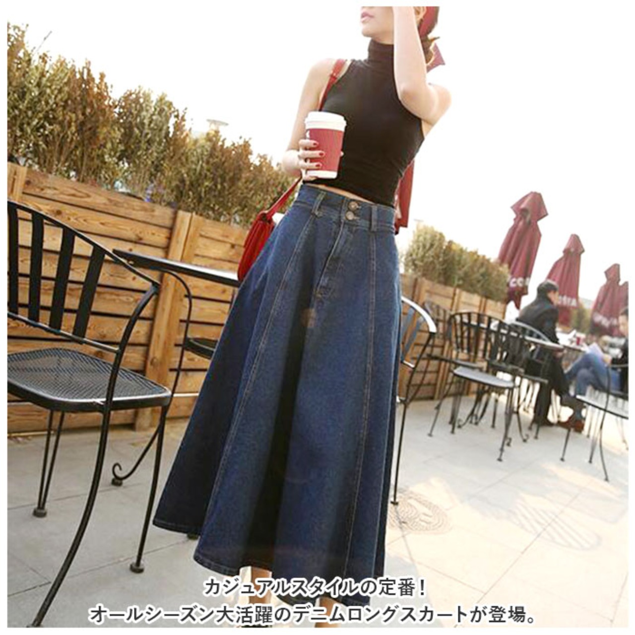 デニムスカート ロング 通販 ロングスカート デニム スカート マキシ丈 Aライン フレア ボトムス ひざ下 膝下 無地 シンプル ハイウエスト 春夏 秋冬 ガーリー カジュアル おしゃれ カワイイ 定番 レディース