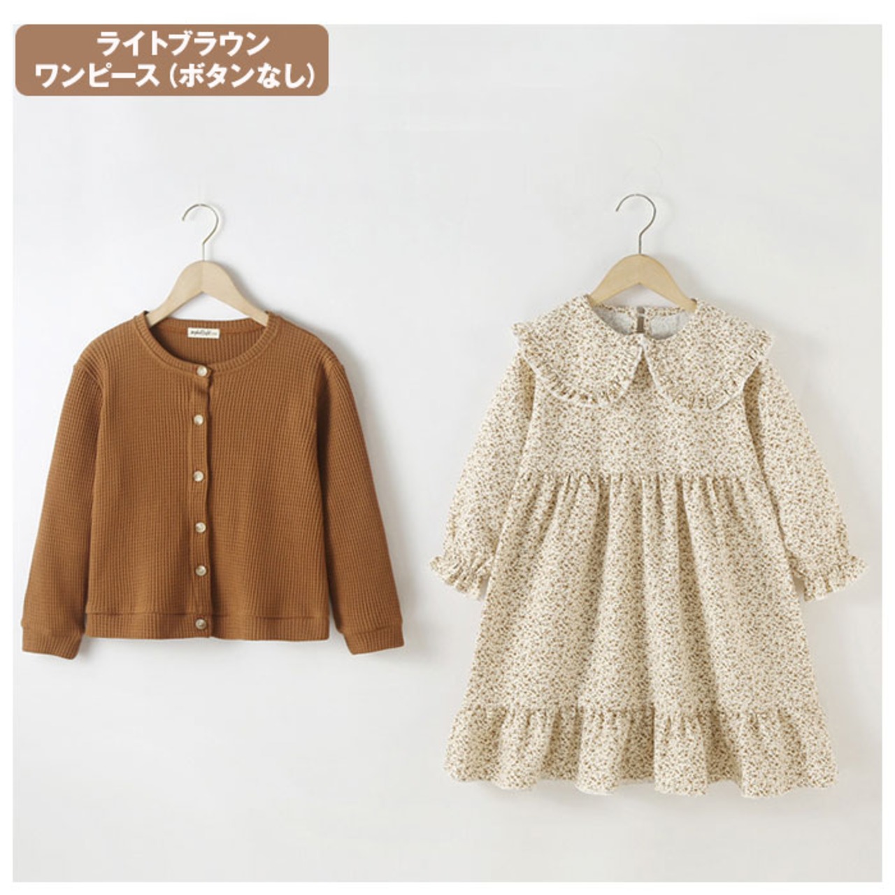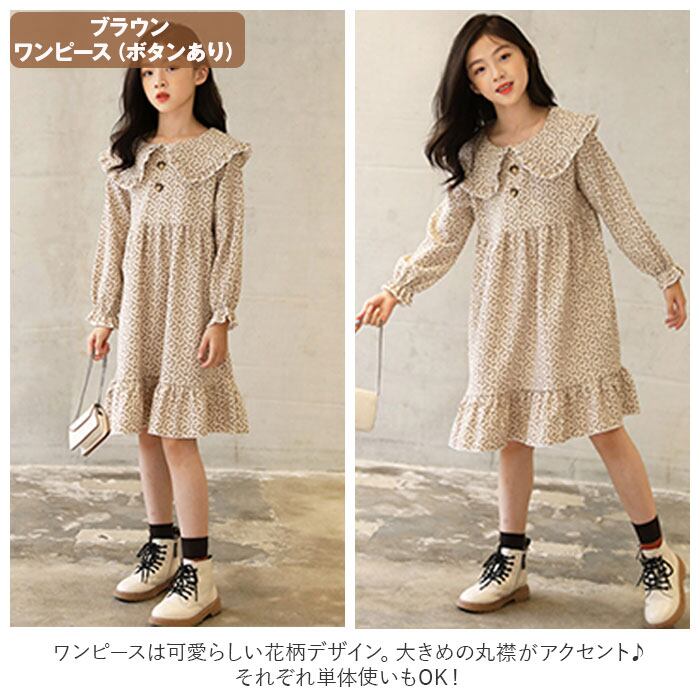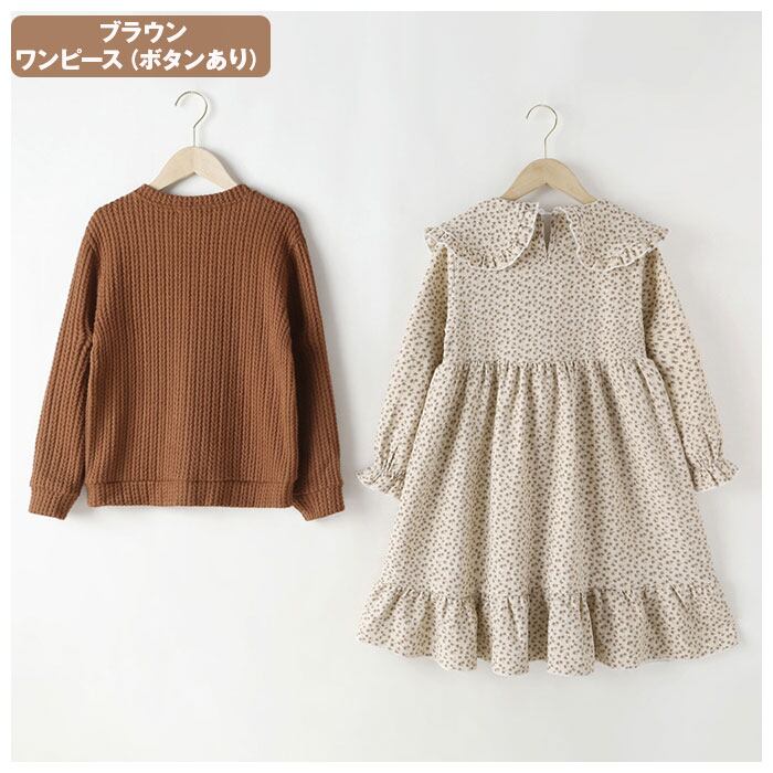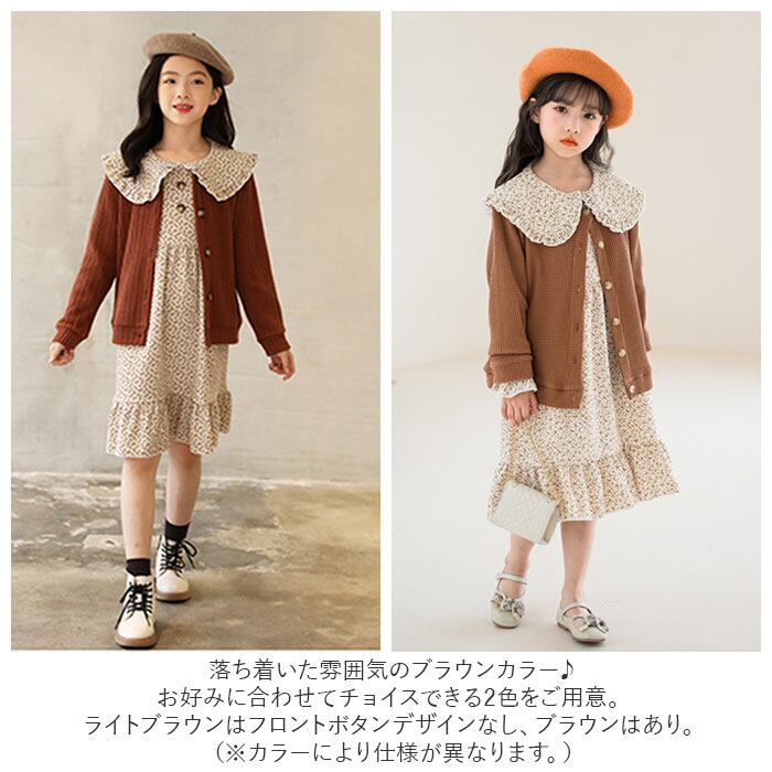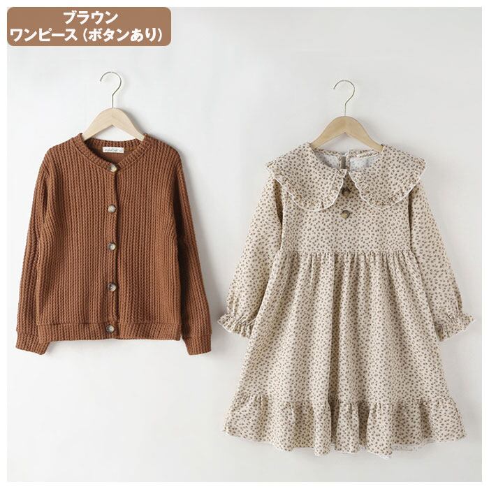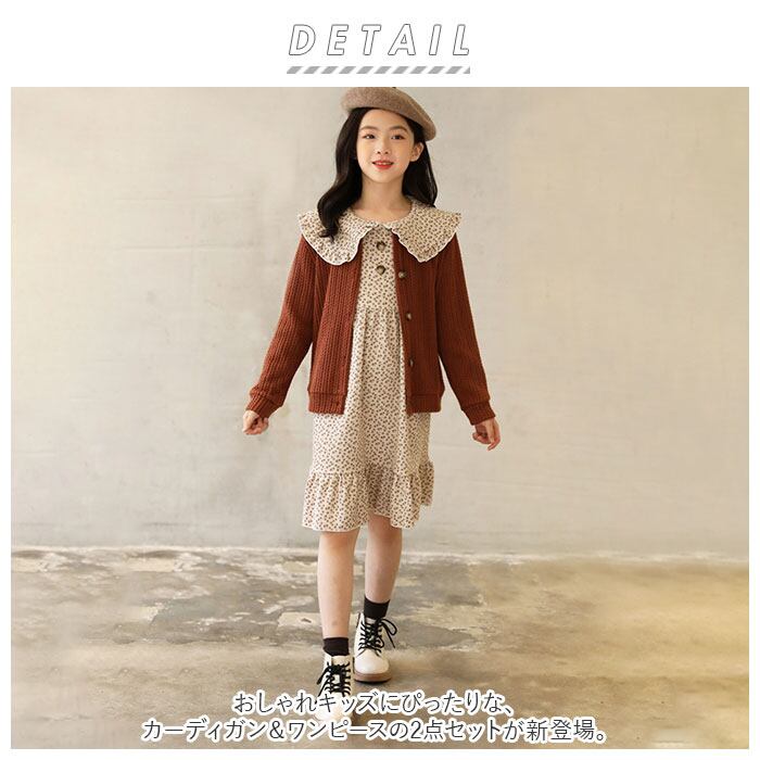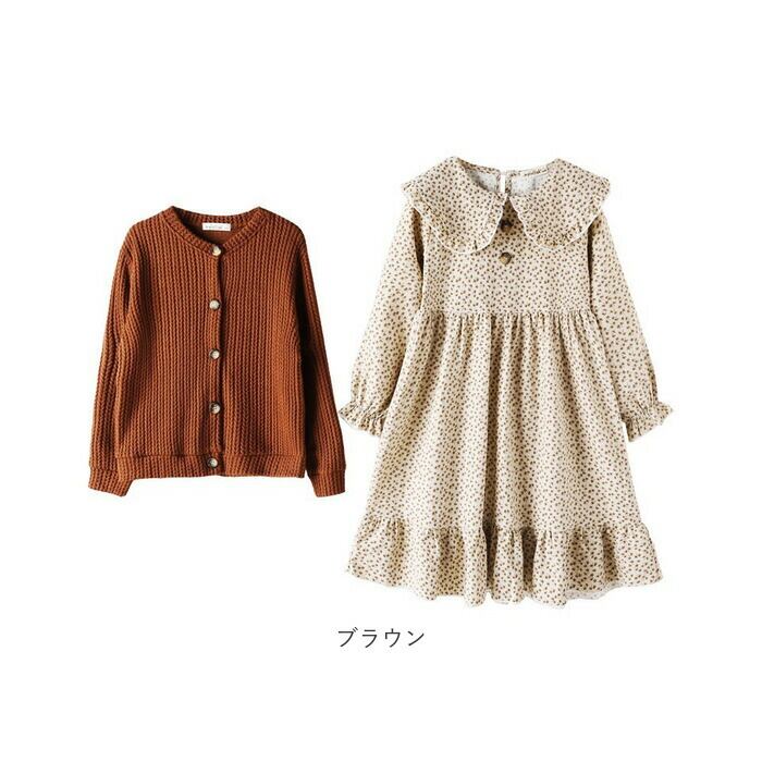 キッズ セットアップ 女の子 通販 ワンピース カーディガン セット ワンピ カーデガン 長袖 秋冬 春 春秋 秋 ナチュラル カジュアル おしゃれ 可愛い かわいい ブラウン ベージュ 小花柄 フラワー スカートセット カジュアルスカートセット カジュアルセットアップ キッズ服