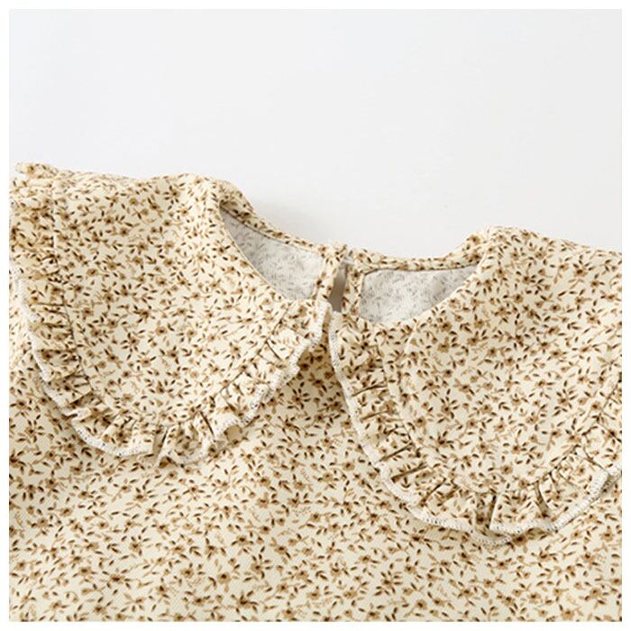 ・ワンピースは可愛らしい花柄デザイン。大きめの丸襟がアクセント♪