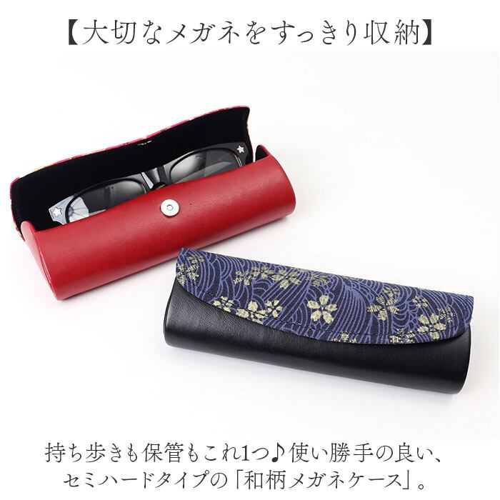 ・持ち歩きも保管もこれ1つ♪使い勝手の良い、セミハードタイプの「和柄メガネケース」。