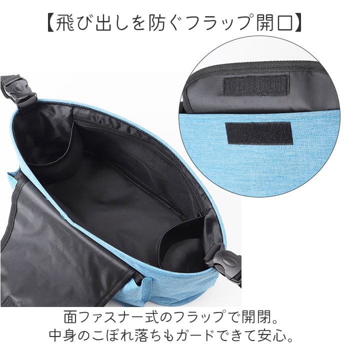 ・面ファスナー式のフラップで開閉。中身のこぼれ落ちもガードできて安心。