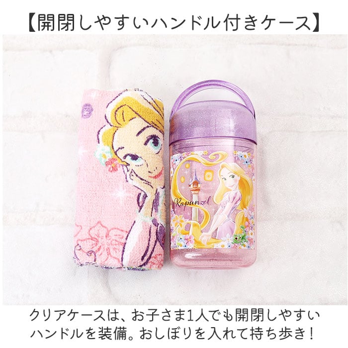 ・クリアケースは、お子さま1人でも開閉しやすいハンドルを装備。おしぼりを入れて持ち歩き!