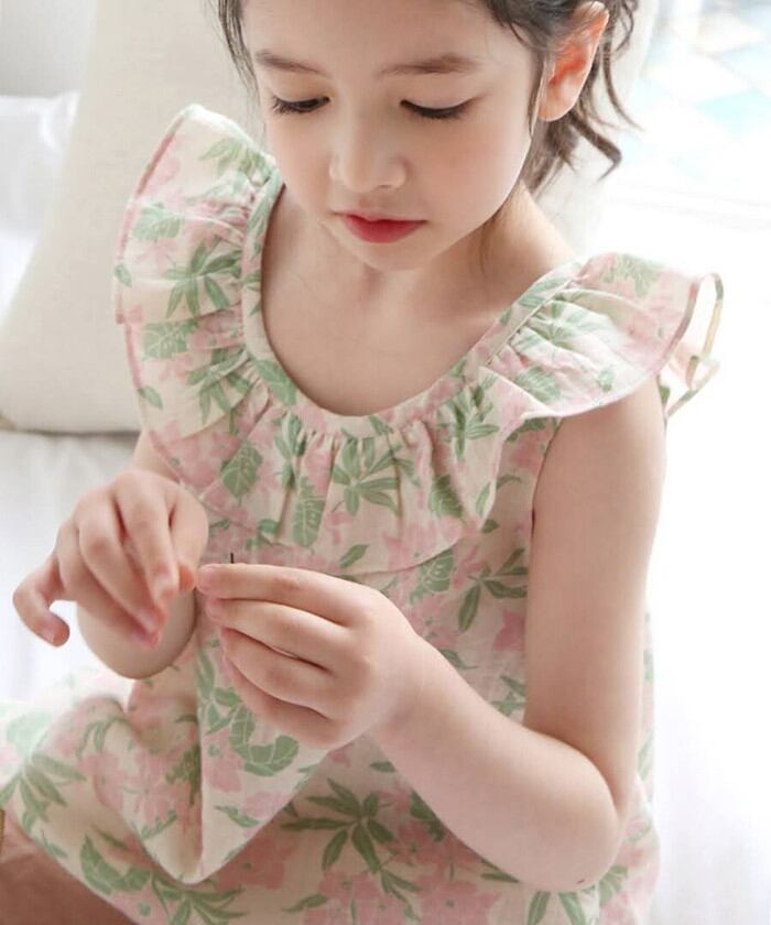 ・水彩画のような花が描かれた 優雅な夏夢のような、夏コットントップスのご紹介です♪