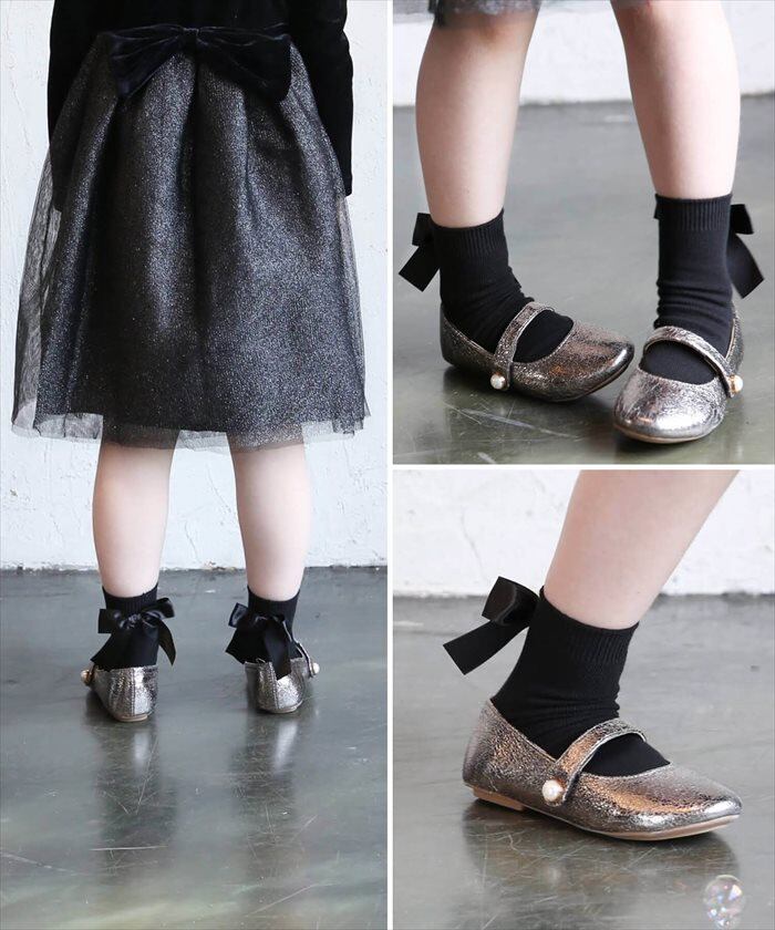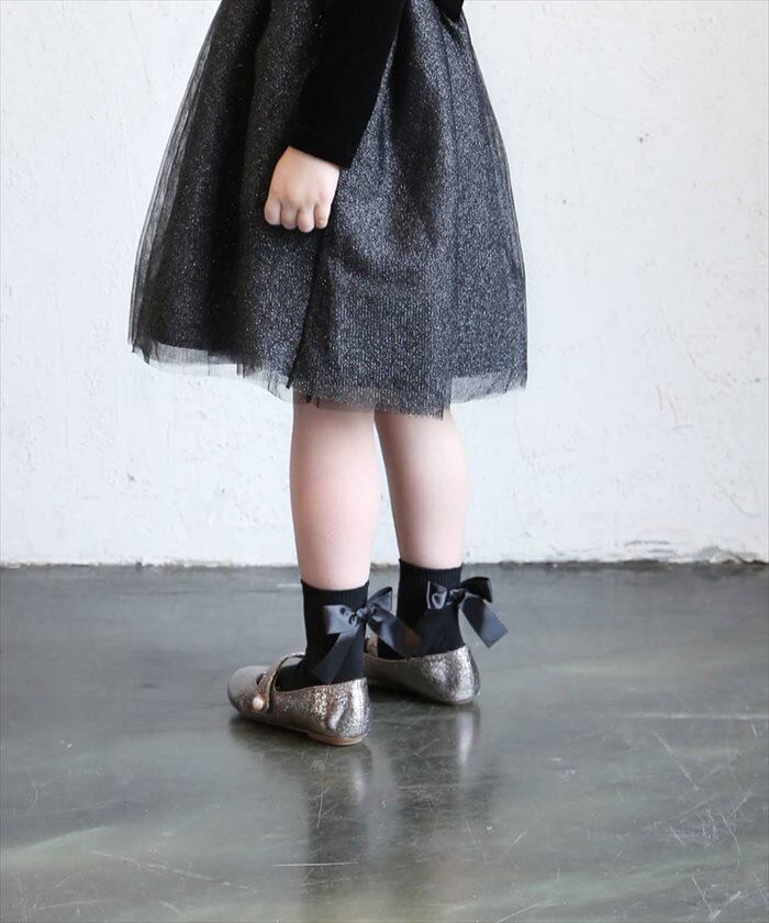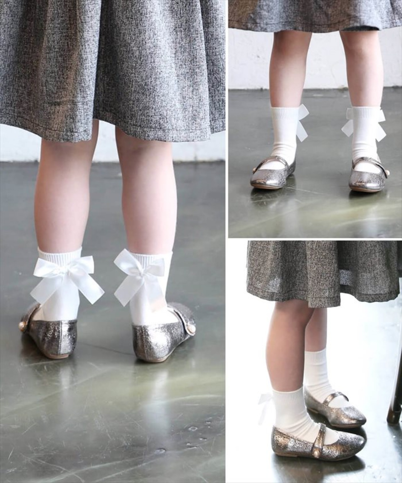 ・ある日、ママは大切な娘に、特別なギフトを もって帰ってきました!後には大きなリボンが飾られ、そのリボンはほんのり光沢のある素材で できており、とっても上品で可愛らしい輝きを放っているアンクルソックス☆